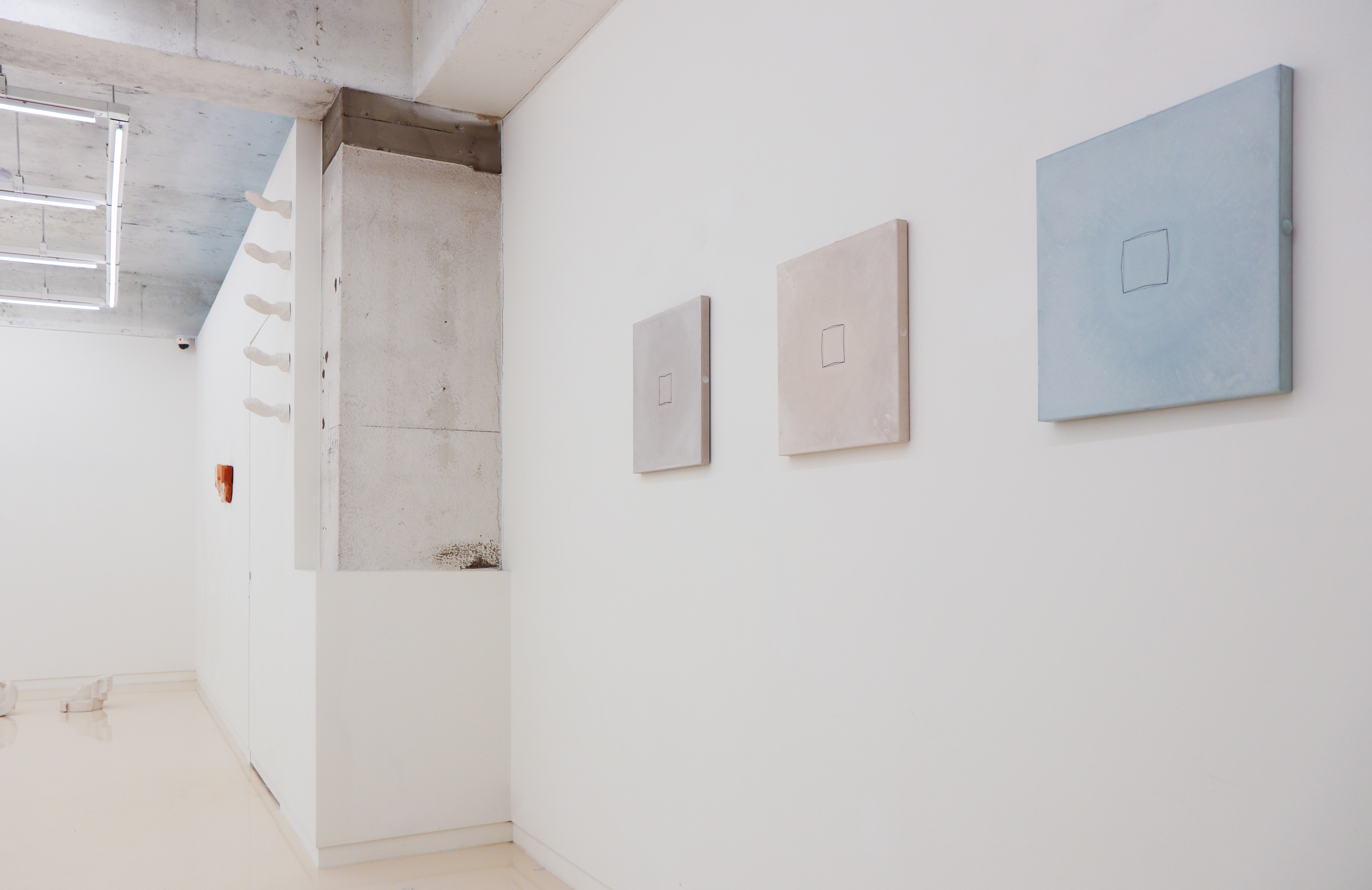 예를 들어 그녀는 원기둥으로 원형을 만들고 캐스팅한다. 나는 원기둥을 떠올리면 세잔이 생각나는데, 손해원의 원기둥은 공장의 생산 라인에서 온 것이다. 원기둥 형태는 공장에서 가장 많이 사용되는 몰드의 형태이기 때문이다. <정사각 꿈 Square Dreams>(2020)는 원기둥에서 비롯되어 원기둥을 벗어나는 여섯 가지 형태의 배열이다. 몰드의 파편이 원기둥에 붙어 변형을 거듭하여 복잡한 형태가 되어가는 여섯 “단계”를 배열한 것이다. 이 작품의 제목이 <정사각 꿈>이라는 것은 재미있다. 정사각형은 어디에도 보이지 않기 때문이다. 원기둥은 정사각형의 꿈일까? 손해원은 실제로 <정사각 꿈>은 정육면체가 복잡한 형태로 진행되는, 그녀의 이전 작업 <잠시 중단Hiatus 2018>에서 온 것이라고 한다. 자기 자신의 작업을 레퍼런스로 삼아 이전 작업의 형태를 반복하는 것은 그녀가 말한 “유일한 에디션”을 만들기 위한 방법론 중 하나다.